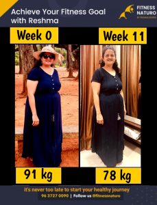 Lost almost 11kg and could see extreme difference in myself and could wear all clothes which were just piled up in cupboard. Thank you so much Reshma mam for motivating me each time when I got bored with diet and resolving my endless queries.