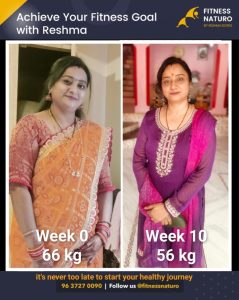 आता माझी चाळीशी जवळ येत होती आणि पुढे कोणतेही आजारपण नको म्हणून मला वेट लॉस करायचा होता. Reshma ma’am च्या एका व्हिडिओमध्ये त्यांनी जे अगदी सोप्या आणि सहज भाषेत समजावून सांगितलं, ते मला खूप भावलं. त्याच क्षणी मी Fitness Naturo जॉईन करण्याचा निर्णय घेतला.
